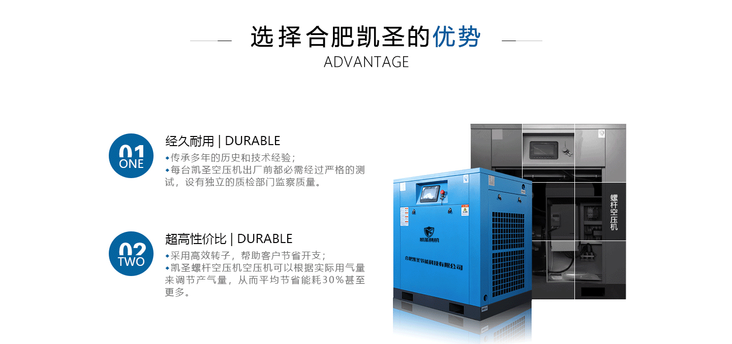 合肥凱圣節(jié)能科技有限公司是從事永磁變頻螺桿壓縮機系統(tǒng)的設(shè)計、制造、安裝、調(diào)試、維修與一體的公司。 在多年的螺桿空壓機研發(fā)與推廣歷程里,凱圣聚集和培養(yǎng)了大量壓縮機技術(shù)設(shè)計和管理人員,迅速發(fā)展成為集研究、生產(chǎn)、銷售、服務(wù)等環(huán)節(jié)為一體、嚴(yán)格按照標(biāo)準(zhǔn)執(zhí)行的企業(yè),公司成立開始,即以滿足客戶的實際需求為己任,大力開拓國內(nèi)外節(jié)能型空壓機市場,并始終保持創(chuàng)新精神,全力研發(fā)更為節(jié)能的螺桿式空壓機,努力站在空壓機節(jié)能領(lǐng)域的排頭位置。 應(yīng)用范圍:公司產(chǎn)品廣泛應(yīng)用于機械、輕工、紡織、食品、石油、化工、冶金、礦山、電力、城建、醫(yī)學(xué)研究和科研等各行業(yè)中,將為節(jié)約能源做出巨大貢獻(xiàn)。公司秉承“信譽至上,...